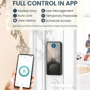 Unlock your door easily using fingerprint, passcode, or the mobile app. This smart lock eliminates the need for traditional keys, so you never have to search your pockets or bag again.
